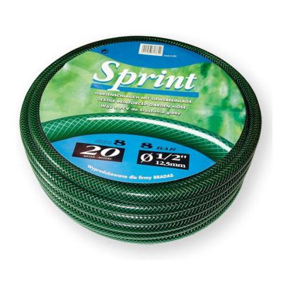 Wąż ogrodowy Sprint marki Bradas to solidny, zbrojony, 3-warstwowy wąż w kolorze zielonym o całkowitej długości 50 m. Wykonany jest z miękkiego PCV i ma wszechstronne zastosowanie do prac przy nawadnianiu ogrodu oraz mycia powierzchni wokół domu.